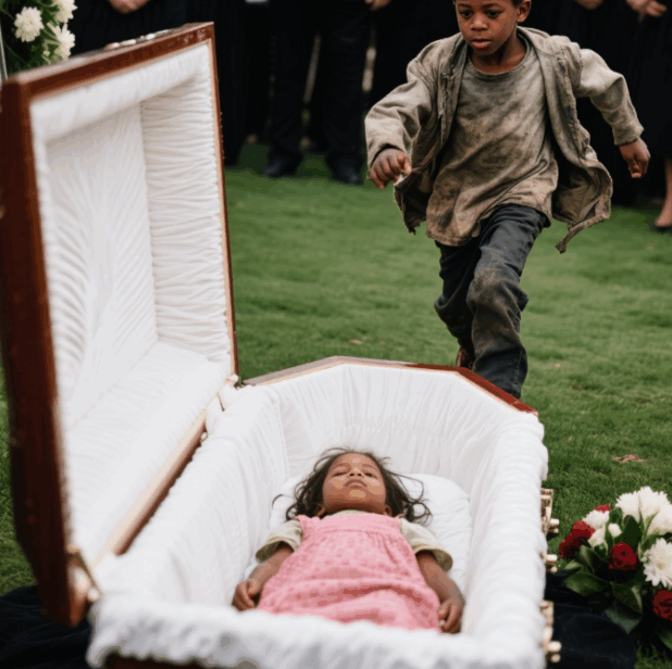 « Votre fille est toujours en vie ! » 💔 — Un jeune garçon noir sans abri se précipita vers le cercueil ⚰️ et révéla un secret si bouleversant 😢 qu’il fit éclater en sanglots le milliardaire… 💎😭