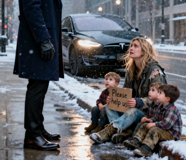 Près du trottoir, recroquevillée sous une couverture trop fine, une femme serrait contre elle trois petits enfants pour les protéger du froid. Elle tenait un carton sur lequel on pouvait lire : *Aidez-nous, s’il vous plaît. Tout don compte.*