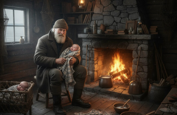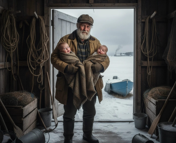 Un matin glacial de janvier, il se rendit à son vieux hangar à bateaux, aujourd’hui réduit à un simple débarras. En poussant la porte grinçante, il s’arrêta net. Parmi les cordages et les seaux reposaient deux petits paquets enveloppés de couvertures rugueuses.