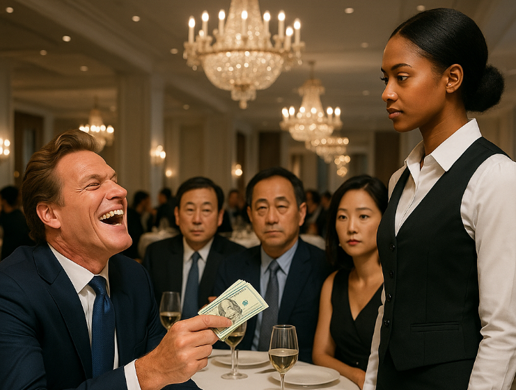 Les billets tombèrent sur son plateau comme une gifle. Pour les hommes à la table, ce n’était qu’un jeu. Pour Jasmine, c’était une fortune — de quoi payer les soins de sa mère et offrir un avenir à sa sœur. Mais elle comprit vite : cette proposition n’était pas un geste de générosité, c’était un test de domination.