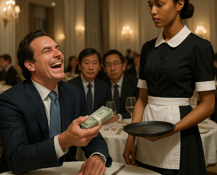 C’était un mardi soir lumineux à Manhattan. Sous les lustres dorés du *Prestige Club*, les rires et le tintement des verres en cristal se mêlaient à la musique du piano. À la table centrale trônait **Richard Blackwood**, magnat de l’immobilier, dont le bronzage semblait coûter aussi cher que son costume taillé sur mesure. Lorsqu’il riait, toute la salle riait avec lui — non par humour, mais par intérêt.