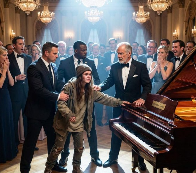 Sous les lustres éclatants du gala, les invités les plus influents de Londres brillaient de soie, de velours et d’une assurance presque insolente. Au fond du hall de marbre, deux agents de sécurité traînaient une silhouette frêle : une jeune fille en haillons, trop légère pour l’hiver, trop insignifiante — pensaient-ils — pour un tel événement. Personne ne prit la peine de demander son nom : Emily Ward, dix-sept ans, qui avait dormi sous le pont de Waterloo la veille encore. Elle se débattait faiblement, les yeux rivés sur le piano à queue étincelant sous les projecteurs.
