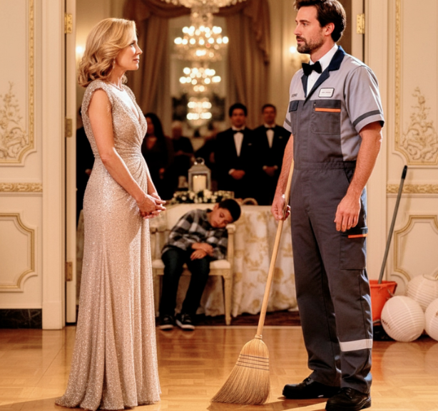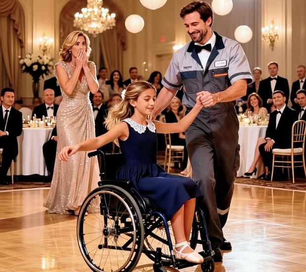 Il hésita. Son regard glissa sur son uniforme taché, sur le balai posé à côté, puis sur son fils endormi sur les gradins. Finalement, il posa doucement le manche au sol, s’approcha et prit la main de Lila. Lentement, il fit rouler son fauteuil vers le centre du parquet.